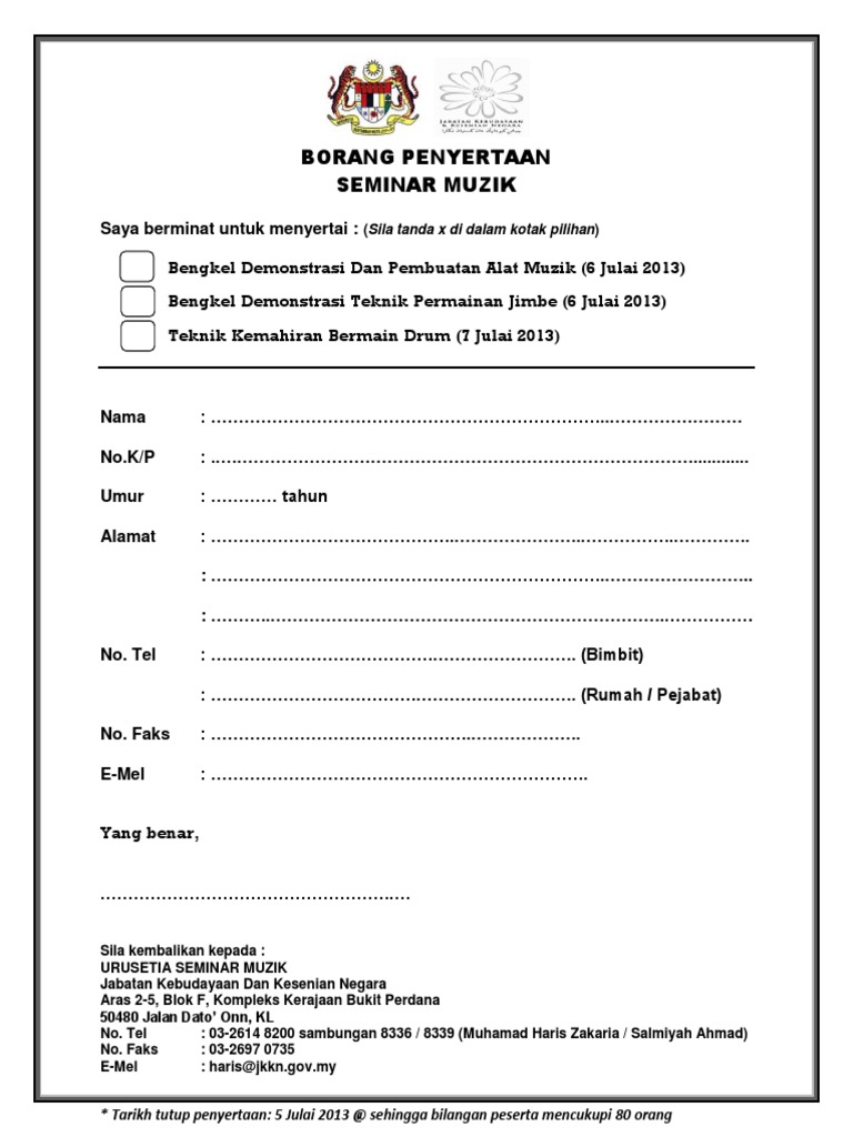 Borang Penyertaan Seminar Musik 3 Seminar Pdf